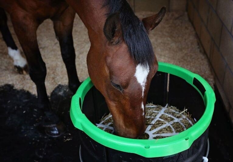 Un râtelier slowfeeding en plastique sûr, conçu pour une utilisation en extérieur afin de...