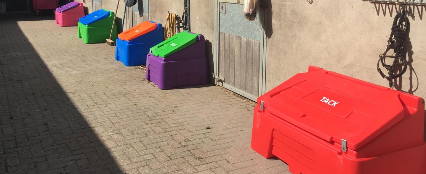 Grâce à nos deux prestataires à la fabrication française et anglaise, nous vous offrons la possibilité de vous proccurer des malles de stockage pour écuries ou concours armoires d'écuries en plastique imputrescibles, légères et traitées contre les UV.