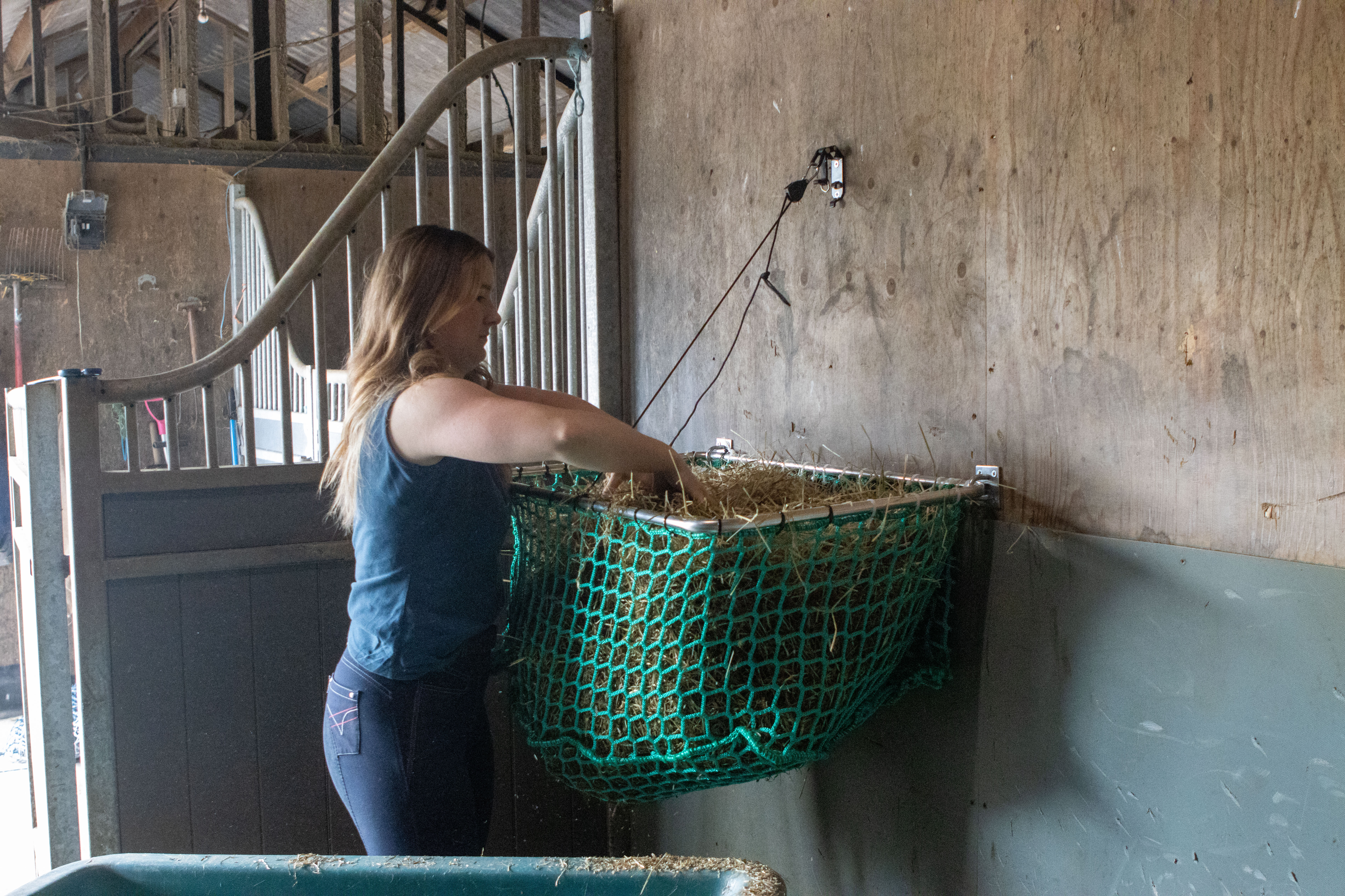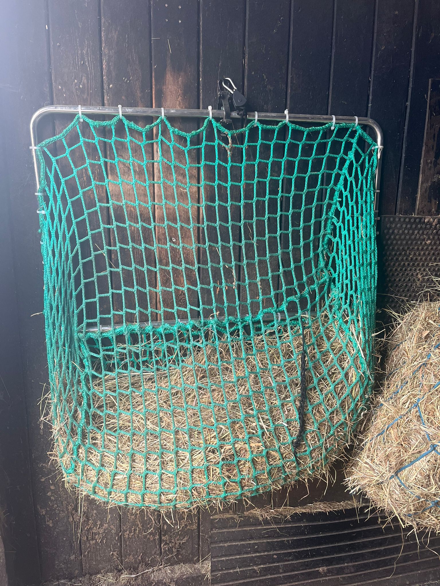 Le HayWall est un kit filet très résistant pouvant contenir jusqu'à 12 kg de fourrage en fonction du conditionnement du foin (petite botte ou vrac). Il permet d'économiser du temps et des efforts par rapport au remplissage des filets à foin traditionnels.