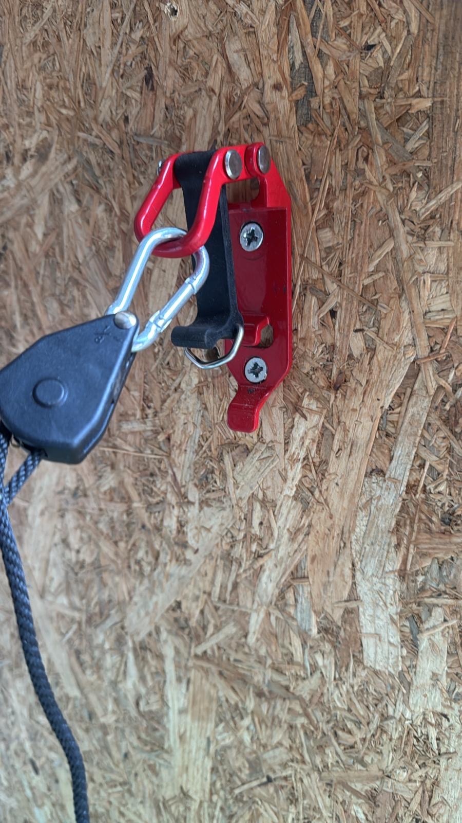 - Tirer sur la corde pour remonter le filet jusqu'au mur.