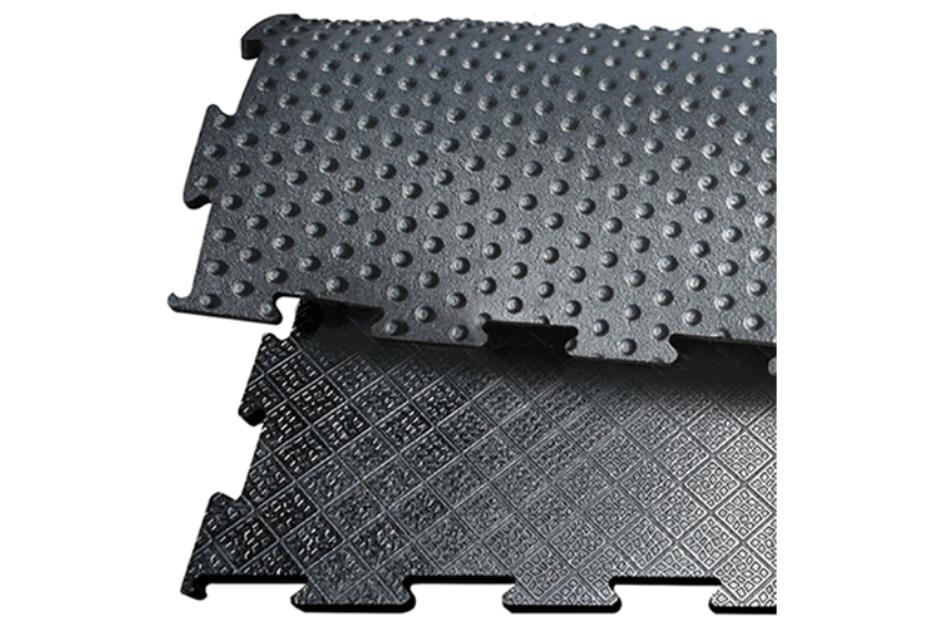 La surface supérieure à motif diamant offre une excellente adhérence, y compris sur sol mouillé, réduisant considérablement les risques de glissade et de blessures pour les chevaux comme pour les utilisateurs.