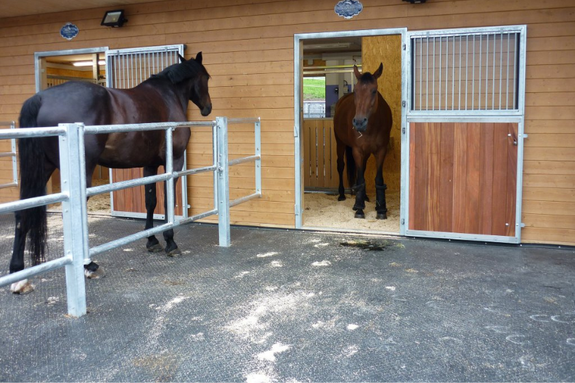Sa conception antidérapante en fait un revêtement idéal pour les douches pour chevaux, les aires de pansage, les zones vétérinaires, les solariums ou encore les terrasses de paddock devant les boxes ouverts.